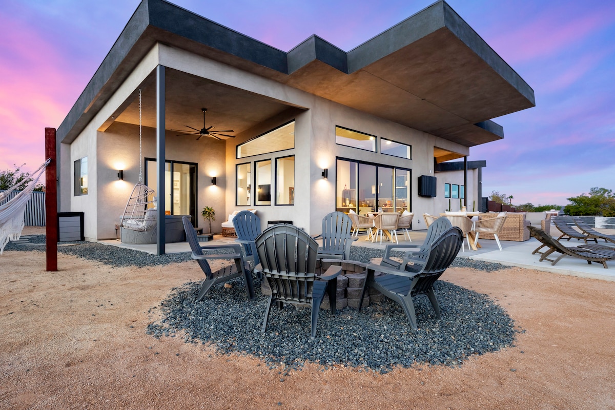 🌵Ramble On — Your Private Luxury Desert Compound in Joshua Tree Welcome to Ramble On, a newly built luxury compound set just outside Joshua Tree National Park and only a 3-minute drive from downtown. Designed for complete privacy and total relaxation, this retreat offers panoramic desert views, modern comforts, and resort-style amenities — all wrapped within a true 6-foot privacy fence, a rare find in Joshua Tree.