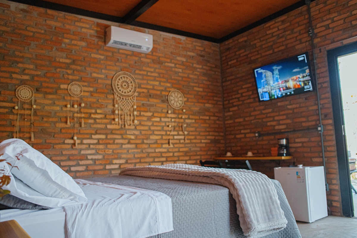VILLA 🏡 STRUCTURE AND COMFORT Our proposal is in style _do it yourself_ — ideal for those who value autonomy, tranquility and a good dose of comfort and elegance. Each chalet offers: – Panela – Cutlery – Microwave – Induction Cooking – Air fryer – Minibar • Cozy space with: – Sofa – TV – Air-conditioning in the bedroom and living room – Mixer All designed for you to have the freedom to live the experience your way — with elegance, practicality and lavish charm!