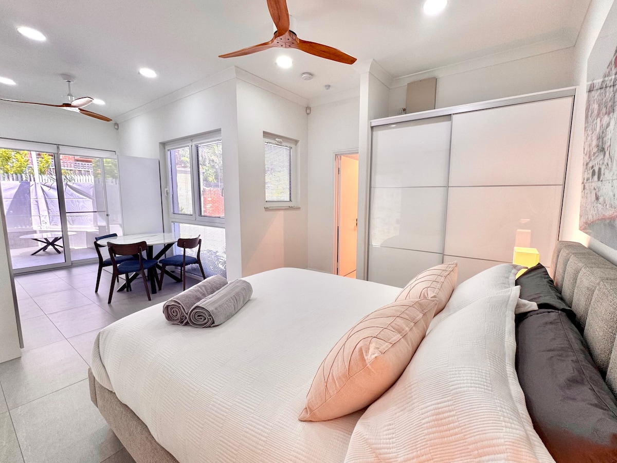 Immaculately presented & beautifully decorated 5 star light filled apartment located right in the exciting centre of Freo. This true gem offers you a personal parking bay, super comfortable king size bed & private alfresco plant filled garden deck ! A delightful heritage converted warehouse, it will be a joy for you to come home. Perfect for one or two guests, it offers a welcoming home for anyone travelling on business or on vacation. A green retreat to unwind & enjoy a peaceful Freo sojourn.