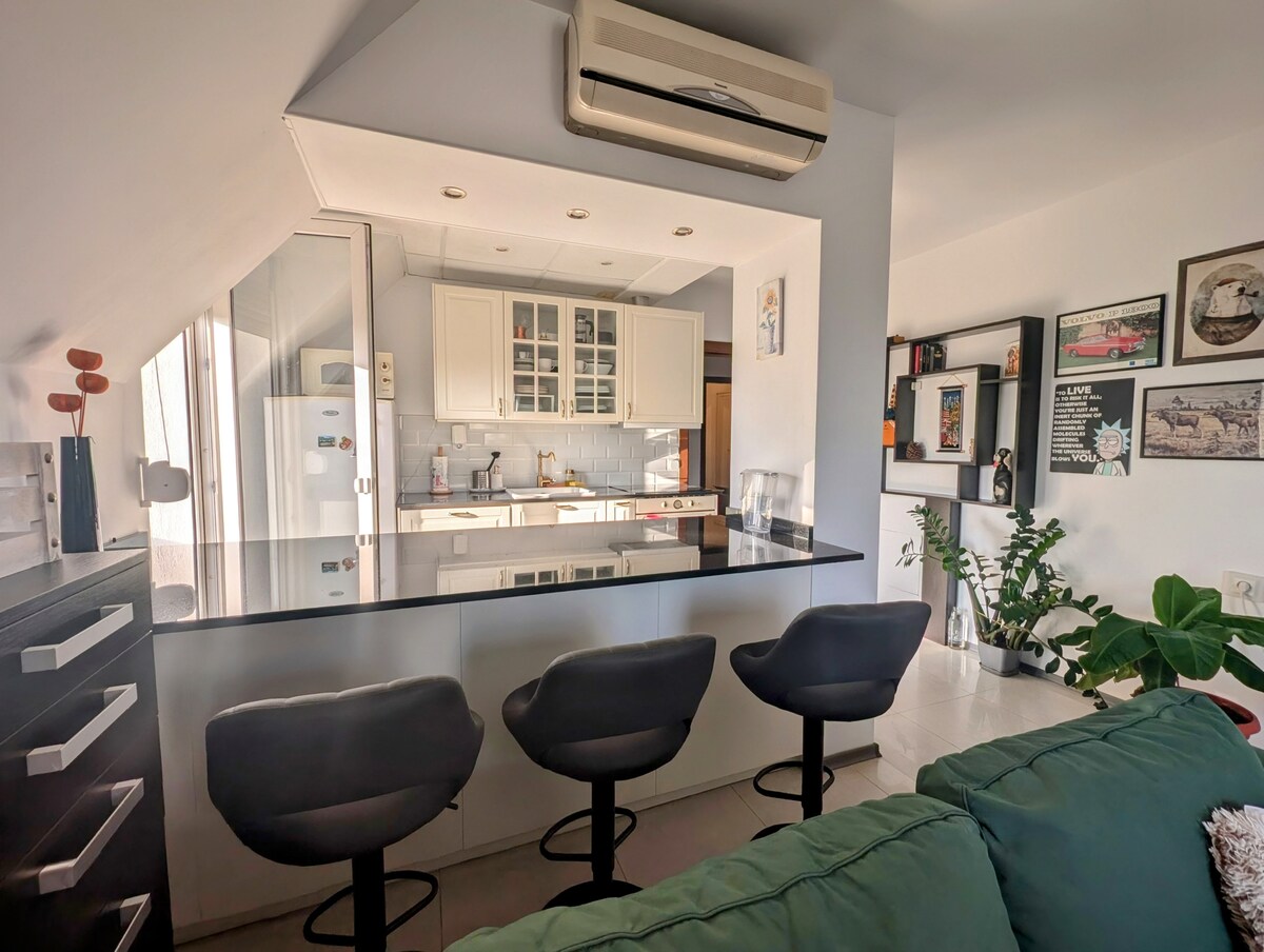 Newly furnished home The Blue Sky Penthouse. Centrally located in a new building close to metro stations. ★"One of the most fully equipped AirBnB places we have stayed in." FEATURED: ➤ Dedicated, top covered parking spot ➤ Quiet Bedroom and LUX Bathroom ➤ Furnished terrace - 75m2 in size ➤ 4K Smart TV 65 Inch and Sofa Bed ➤ Workspace with excellent Wi-Fi ➤ Well equipped kitchen ➤ Two Air Conditioners. Craving some bakery goods? You are in luck! There's a bakery located next to the entrance.