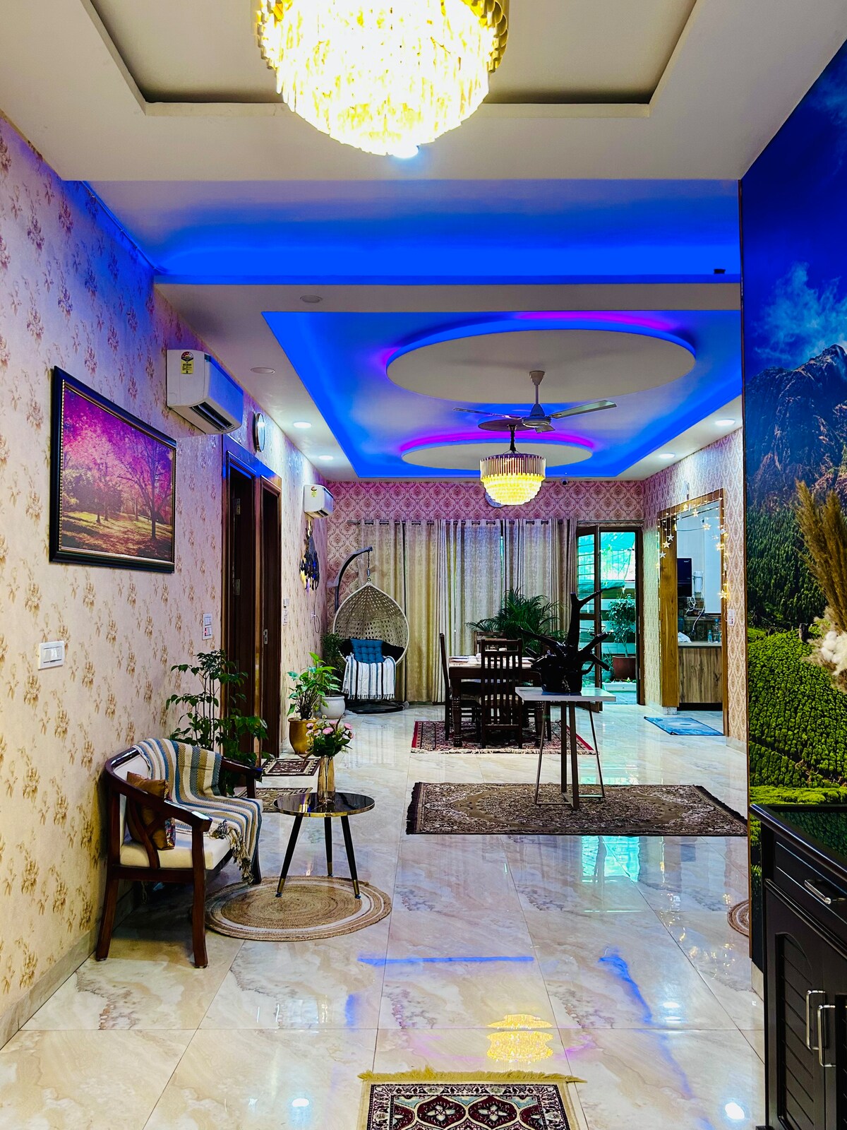 ✨ Chobara707 – A Royal Rooftop Escape ✨ A stylish penthouse with elegant interiors, a cozy bedroom, and a compact kitchen. Enjoy a large-screen tv for movie night & game night with your close ones, or step onto your private rooftop deck with swings, greenery, and open-air seating — perfect for coffee mornings, cocktail evenings, or starlit nights. Centrally located yet private, Chaubara is your serene escape above the city. 🌌 1 km from 43 busstand chandigarh 2km frm 3b2 mohali 3km frm cp67 mall