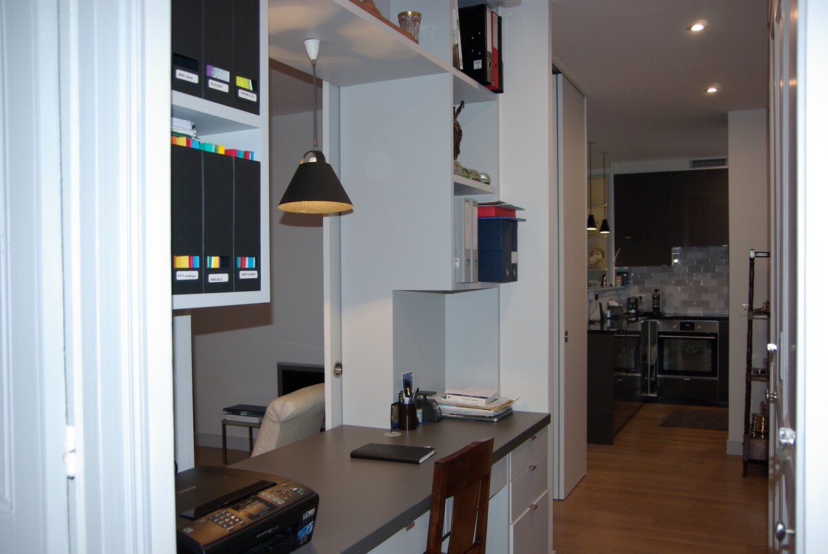 The apartment is located near the Moulin Rouge, in the Montmartre district in the heart of an atypical and very quiet place;It is a 50m2 space which does not overlook the boulevard, ground floor, located far from the noise of the street, high standard with a beautiful bedroom, a relaxation area, a lunch/dinner area, work area , kitchen .It is equipped with new technologies, excellent wifi, a large format television (85p), hi-fi sound and adjustable lighting according to your tastes