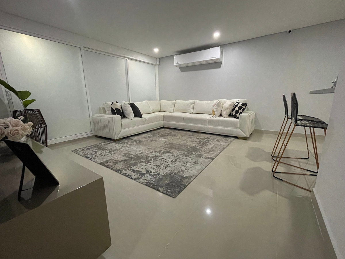 Exclusive 1-bedroom apartment, located north of the city, very comfortable, fully available for guests. Close to the Leyenda Vallenata Park, the river and the CC Guatapurí, and the Provincia park. Overlooking the Sierra Nevada, which makes it the coolest area in the City. Located in a safe and quiet area, in the most modern residential area of the city, easy access to shopping centers, chain stores and two easy access roads.