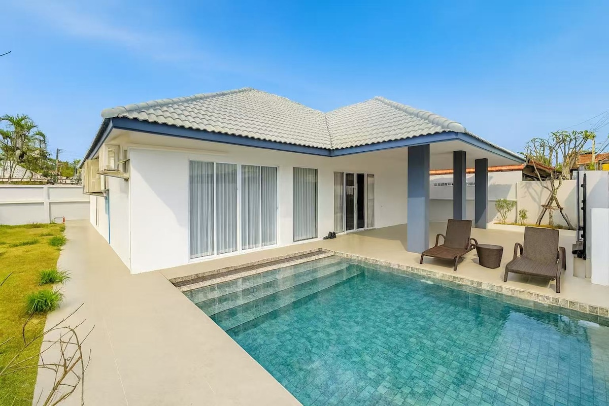 Carry your bag to stay, vacation preferred! Transport Location: The villa sits on Jomtien Beach .Chaiyaphruek Road in a prime location!Walking distance to zhongtian beach, minutes drive to downtown pattaya, rich shopping, food and entertainment options nearby, very convenient to live.Perfect transportation network, convenient to go anywhere, suitable for long stay. Highlights of the villa: • Four-Bedroom with Private Bath: It's totally fine for the whole family or group of friends to stay together, spacious and private. • Private swimming pool: Enjoy the coolness of the exclusive swimming pool, where you can swim at all times and not share it with others. • Outdoor BBQ area: With a BBQ grill, you can enjoy outdoor BBQ grilling anytime with your family and friends, creating a party atmosphere with ease. • Fully equipped kitchen equipment: There is a microwave, refrigerator, etc. in the villa to enjoy a home-cooked meal at any time. • High-quality furnishings and appliances: Hop in, and all the home's furnishings, appliances, household items are fully equipped without additional additions.