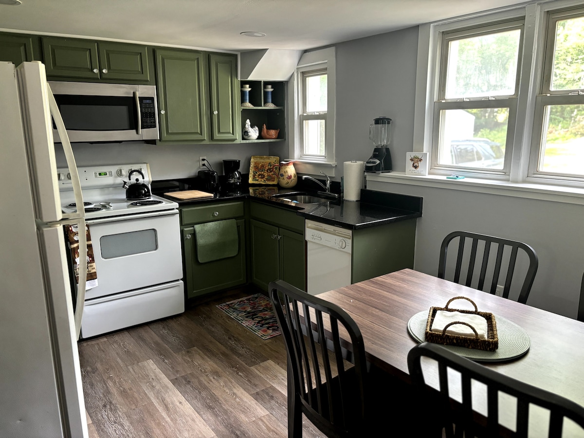 Enjoy this private apartment connected to an 18th century stone house. It comes furnished with 1 1/2 bathrooms, a fully equipped kitchen, large living/dining room, and one bedroom with closet and a queen sized bed. We are located in the beautiful highlands of northwest NJ--about 60 miles from Lincoln Tunnel and 75 miles from Philadelphia. Nearby are historical sights, great hiking and skiing areas restaurants, brew pubs, and a train station. Private parking provided next to entrance.
