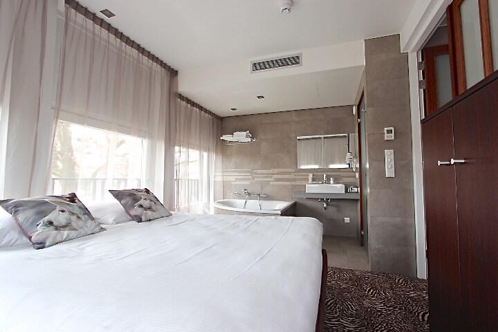 This luxurious family room has stylish decor and is suitable for 2 adults and 2 children. The luxury hotel room has a bath tub, seperate shower and separate toilet. A table, TV and a seat and with a staircase you come to the bedstee. The price is based on 2 adults. Cocharge per child €35,- per person, per night. Good food in our restaurant in the evening. Are you coming to enjoy our hospitality?