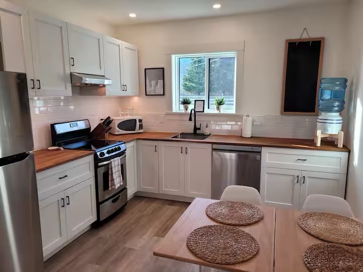 Quiet/private self-contained 1 bedroom apartment over garage with spectacular views & close to recreation. Full kitchen for your convenience (meals not provided).Separate entrance, close to recreation center, snowmobiling, golf, gliding, hiking, walking and biking trails and snowshoeing. You'll love it/great spot!!