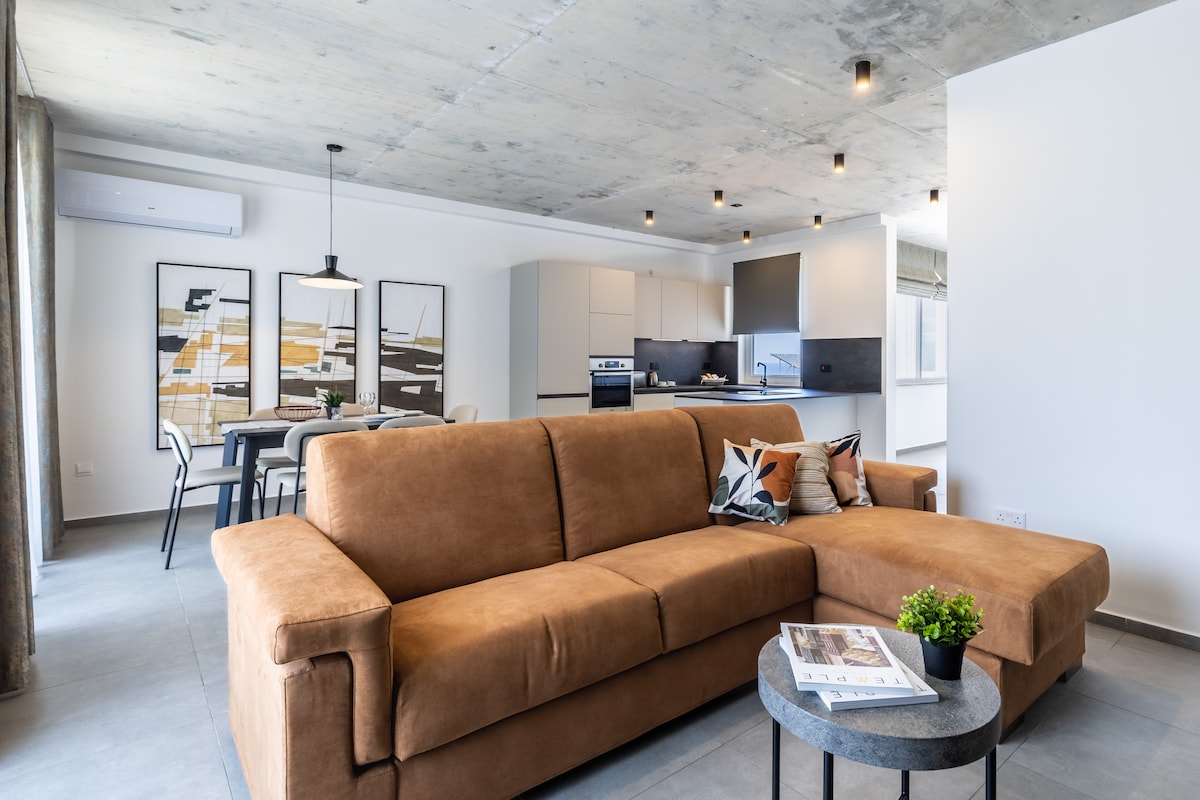 Enjoy a seamless stay with our dedicated Concierge Service. This 150 m² designer penthouse features a 55 m² terrace where open-air living meets Mediterranean calm. A heated plunge pool and sweeping Valletta views make it ideal for romantic escapes or creative stays. Flow between indoor serenity and outdoor beauty in this exclusive sanctuary, just steps from everything. 🏊 Heated pool 27°C 👶 Baby essentials — complimentary on request 🅿️ Parking — subject to availability