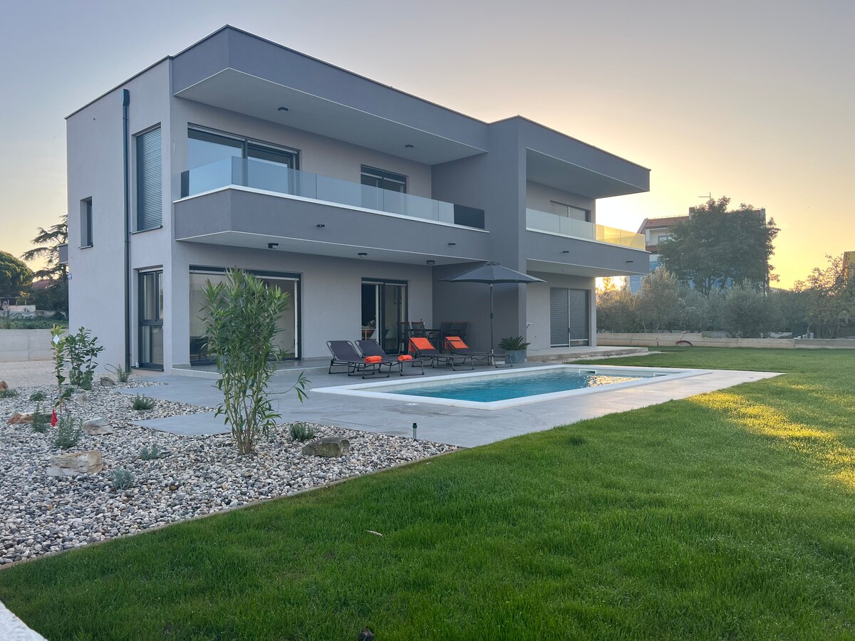 Brand new modern apartment only 400 m from the beach is located in a small quiet place Peroj.It is located on the 1st floor of a house with a beautiful terrace . It has free parking space and private entrance. The host is engaged in the production and sale of domestic olive oil and homemade vegetables.The apartment is located only 5 min walk to the first beach,and the place offers a handful of naturally unspoiled beaches that are easy to reach