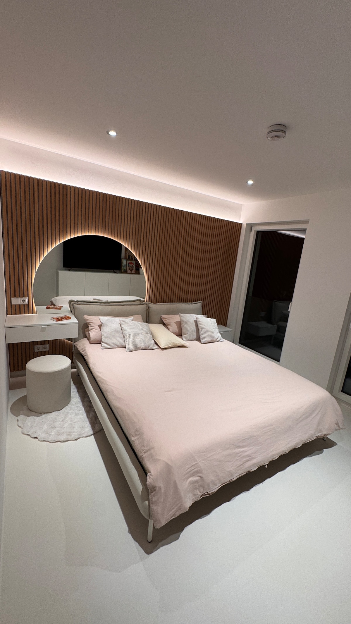3 separate rooms with a total of 6 beds (1 bedroom with 2 beds, 1 bedroom with 3 beds, living room with sofa bed) Fully equipped kitchen with microwave, oven, fridge & coffee machine, washing machine & dishwasher, very fast, stable Wi-Fi, terrace use possible Perfect for fitters, workers or long-term guests. Pets allowed for an extra charge Minimum stay 3 nights (for one person)