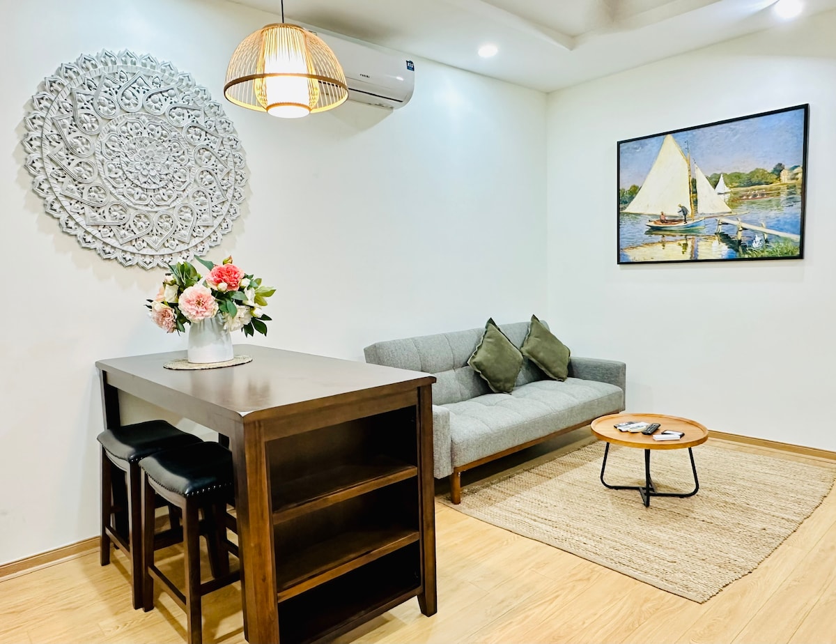 The apartment’s design is inspired by the traditional indigo dyeing techniques of the Hmong people from Vietnam’s northern mountains. Decor & detail reflects this rich cultural heritage, creating a serene and unique atmosphere - We offer FREE SIM4G for booking stay from 3 NIGHTS with us; - SUPER LOCATION is plus that convince you go ahead to stay with us - Porter support to carrying your luggage up on at your arrival. We’re happy to host you
