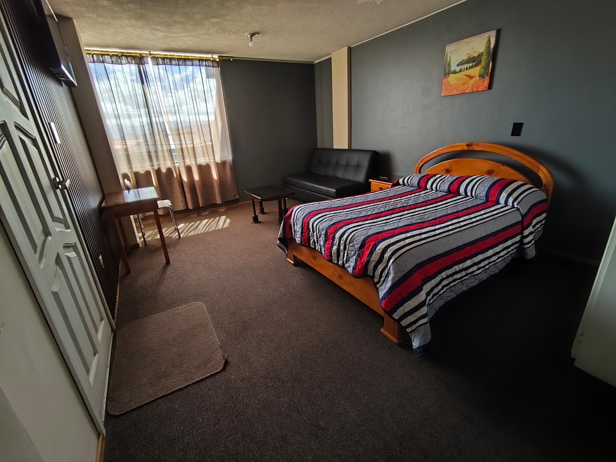 Este elegante hotel room ofrece una experiencia cómoda y moderna en una de las mejores zonas de la ciudad. Su ubicación es ideal: a pocos pasos del Parque La Carolina, muy cerca de Quicentro Shopping y del Estadio Olímpico Atahualpa, rodeado de restaurantes, cafeterías y zonas de ocio. La habitación está equipada con tetera eléctrica, café y tés de cortesía, mini refrigeradora y microondas. Perfecta para viajeros que buscan descanso, comodidad y cercanía a todo lo que ofrece la ciudad.