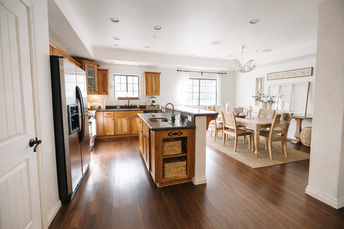 Relax at this boho cabin 5 min from lake, packed with comforts, surrounded by treed lots on all sides! Two luxe king bedrooms, each with a quiet work space and 14" king mattress. A 3rd room with toys, books, and 6 incredible built-in bunks with premium Beddys for snuggly sleep. Spacious great room, with cozy fireplace and dining area for 10+. Ample cook’s kitchen, with island and pantry including amenities of home. Plus garage game room--ping pong, foosball, & arcade basketball! Rest + recharge!