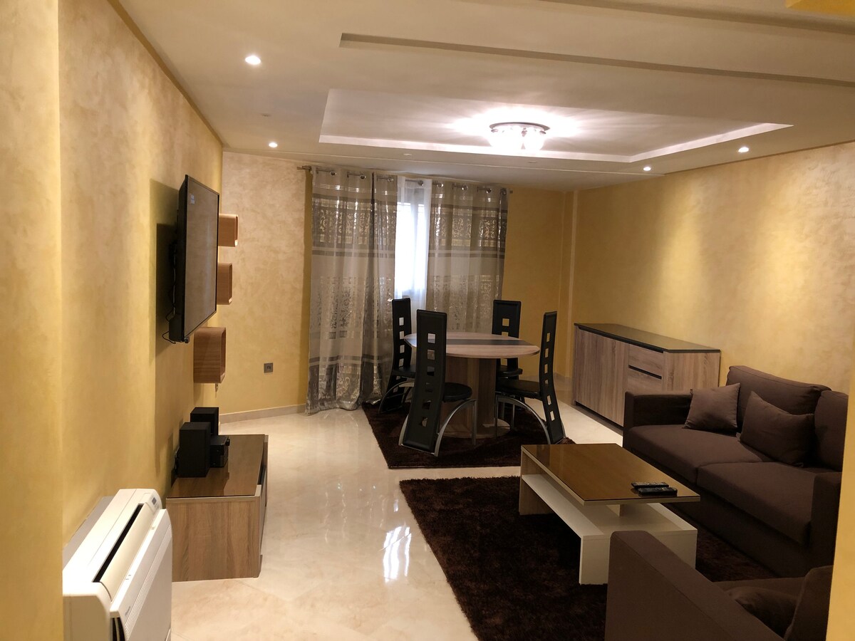 Located in the heart of the new city center Agadir hay Mohammadi Close to restaurants, supermarket, souk, beach, golf Stays, Holidays, Weekends with friends, family or professionals. The 110 m2 apartment will seduce you with its style, comfort, serenity (Smart TV, Wi-Fi, air conditioning, large living space, sofa: extra bed, equipped kitchen, 2 bedrooms, one with balcony, bathroom with bathtub shower, clean sheets and towels) Helpful and responsive host