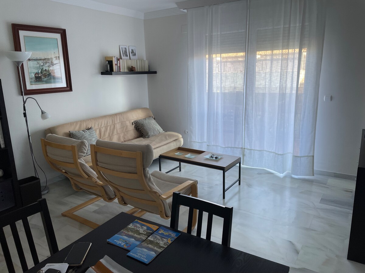It is a spacious one bedroom seafront apartment, located in the popular area of San Cristóbal Beach in Almuñécar. The apartment has all the facilities with modern decoration. It has a communal pool open all year, wifi, air-con, heating, all domestic electrical appliances. Almuñécar is a popular touristic town in the Costa Tropical with very mild temperatures. The apartment is very well located, in front of the prommenade, and the sea and beach. A car is not essential. All services are nearby.