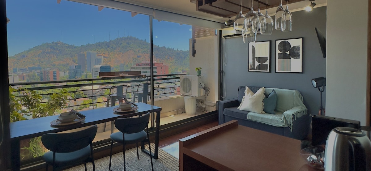 Elegante departamento situado en el corazón de Providencia. Con una impresionante vista a la cordillera de los Andes y al icónico Cerro San Cristóbal. Ubicado a solo pasos del metro Los Leones (Línea 1), mercado urbano tobalaba MUT y del Costanera Center, el centro comercial más grande de Chile. Rodeado de una amplia gama de restaurantes y bares. Ideal tanto para estancias cortas como largas, te ofrecemos un refugio perfecto para explorar Santiago o para relajarte después de un día ajetreado.