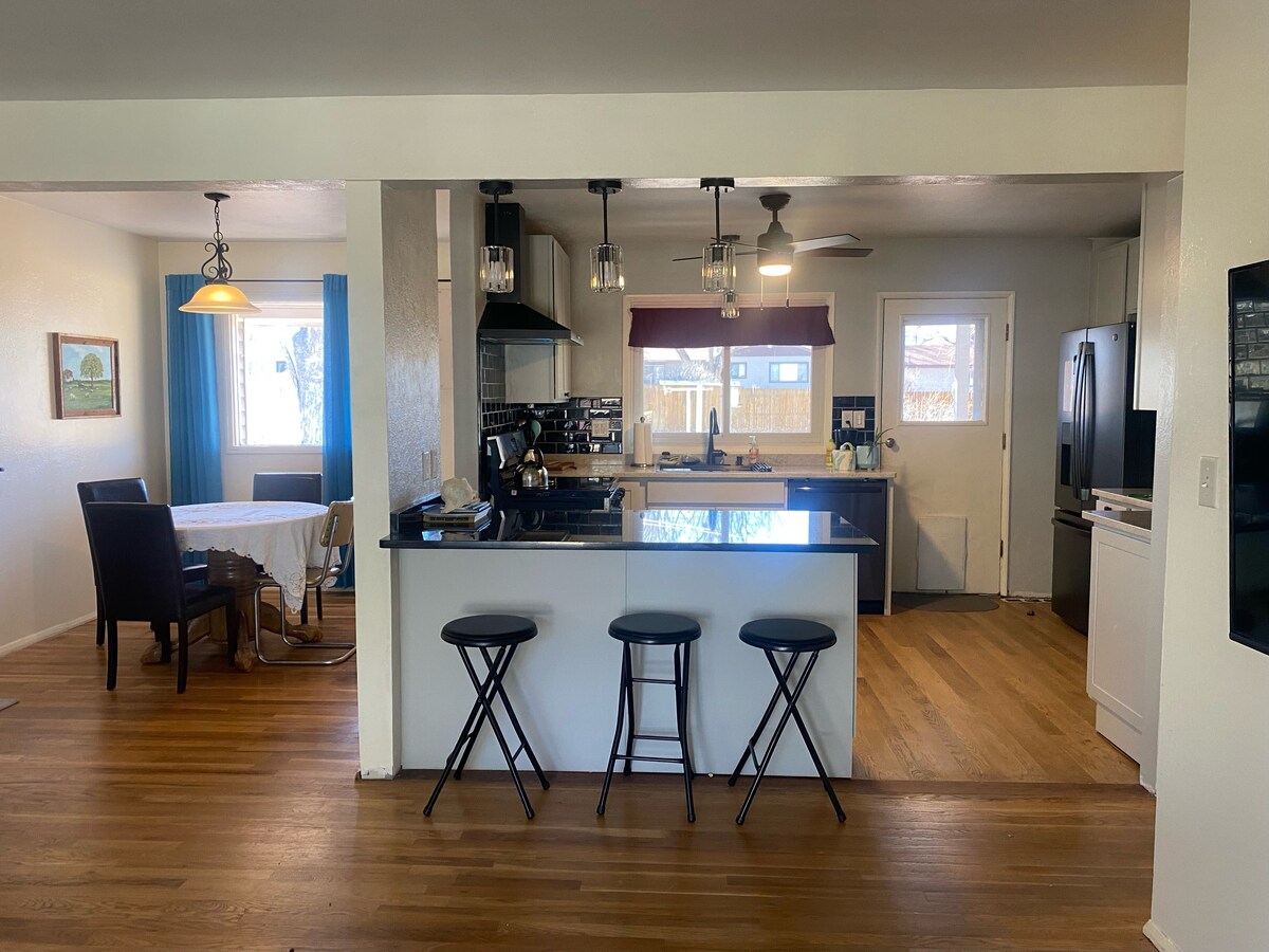 Dolores, CO is located on the banks of McPhee Lake, 2nd largest lake in Colorado. Our house has recently updated interior, freshly painted inside and outside. Very cozy, comfortable and appealing. Grass lawns front and back with a brand new 8'x16' deck at the back door. The house is located less than 100 yards from the Dolores River, good fishing, swimming, kayaking and breathtakingly beautiful! Immediately emptying into McPhee Lake. Abundance of NF, bike trails, big game hunting!
