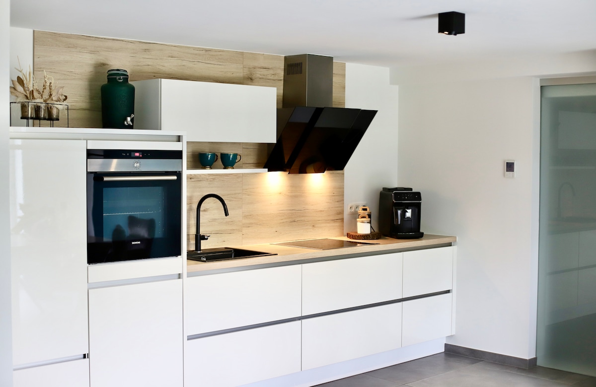 Come and discover the Jonge Bosch apartment located in Plombières in the 3 borders region. The apartment features a comfortable boxspring bed and high-end furnishings, offering both elegance and comfort. Ideal for business travelers or couples, this space includes a fully equipped kitchen and a terrace with private garden and jacuzzi. Come and discover our beautiful 3 borders region (Belgium, the Netherlands and Germany).