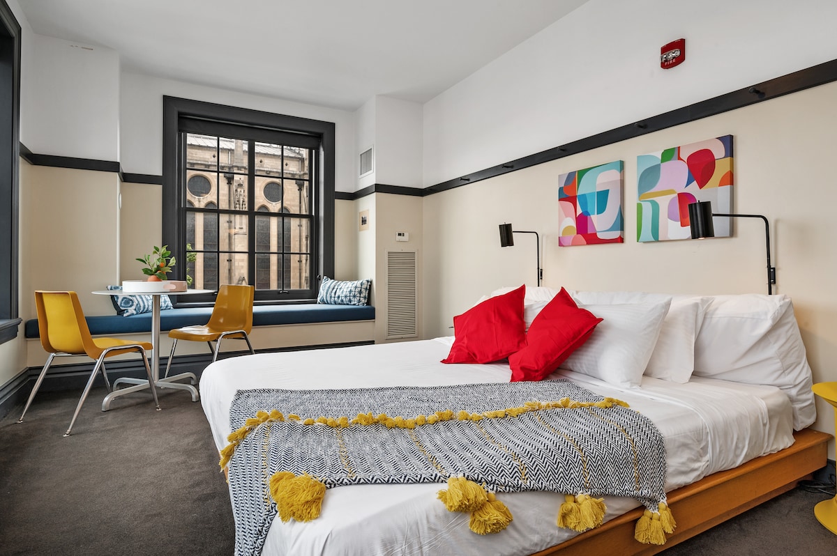 The Maverick by Kasa is your gateway to the best dining, shopping, attractions, and entertainment in Pittsburgh. Located in the historic former YMCA in the East Liberty neighborhood, our storied building seamlessly blends classic charm with modern comfort, featuring a stylish on-site bar lounge that’s perfect for starting or ending your night in the Steel City. Our tech-enabled rooms offer self check-in at 4pm, 24/7 guest support by text and a Virtual Front Desk accessed via mobile device.