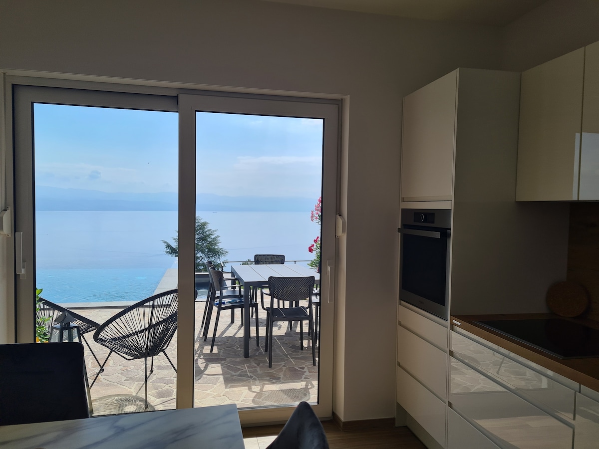 This gorgeous Villa is located on a hill above Opatija. It can accommodate up to 10 people and is perfect for families, a group of friends or couples. This luxurious Villa will make you fall in love in it's open space stylish interior full of real eye-catching details, but most off all the breathtaking view of the sea and complete Kvarner Bay. The Villa has wonderful 5 bedrooms with panoramic Seaview, each has own bathroom and walk in closet. There is also a barbecue, private parking for 5cars.