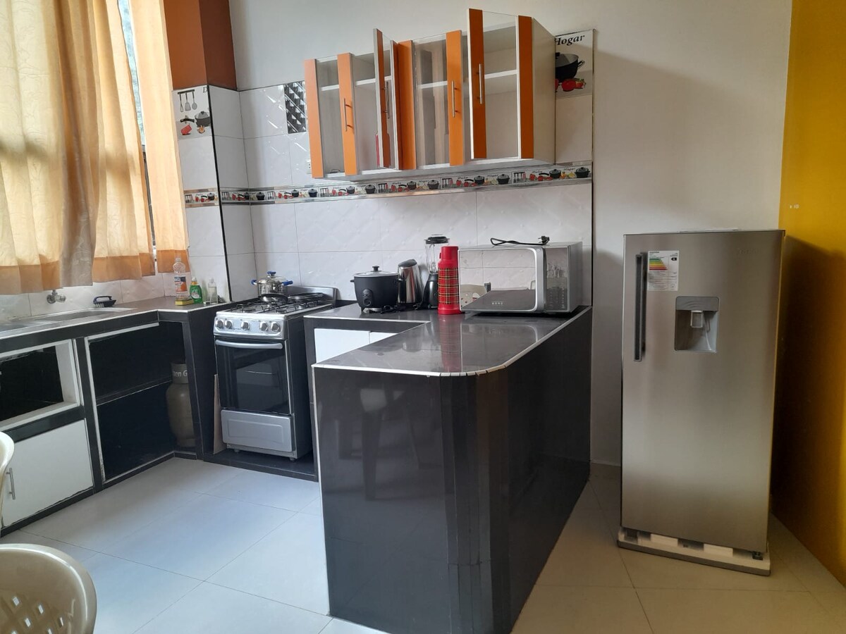 "La Casita de Gocta" located in the village of Cocachimba (the gateway to the Gocta Falls) is a quiet and centrally located accommodation with a direct view of the falls. Very bright, fully furnished and equipped, it is ideal for people who want to spend a season in a rustic style house in the countryside but with all the comforts of the city. It has two bedrooms with a double bed, a full bathroom, a kitchen, a dining room, a living room/desk, a laundry room, a garage, a terrace, and a garden.