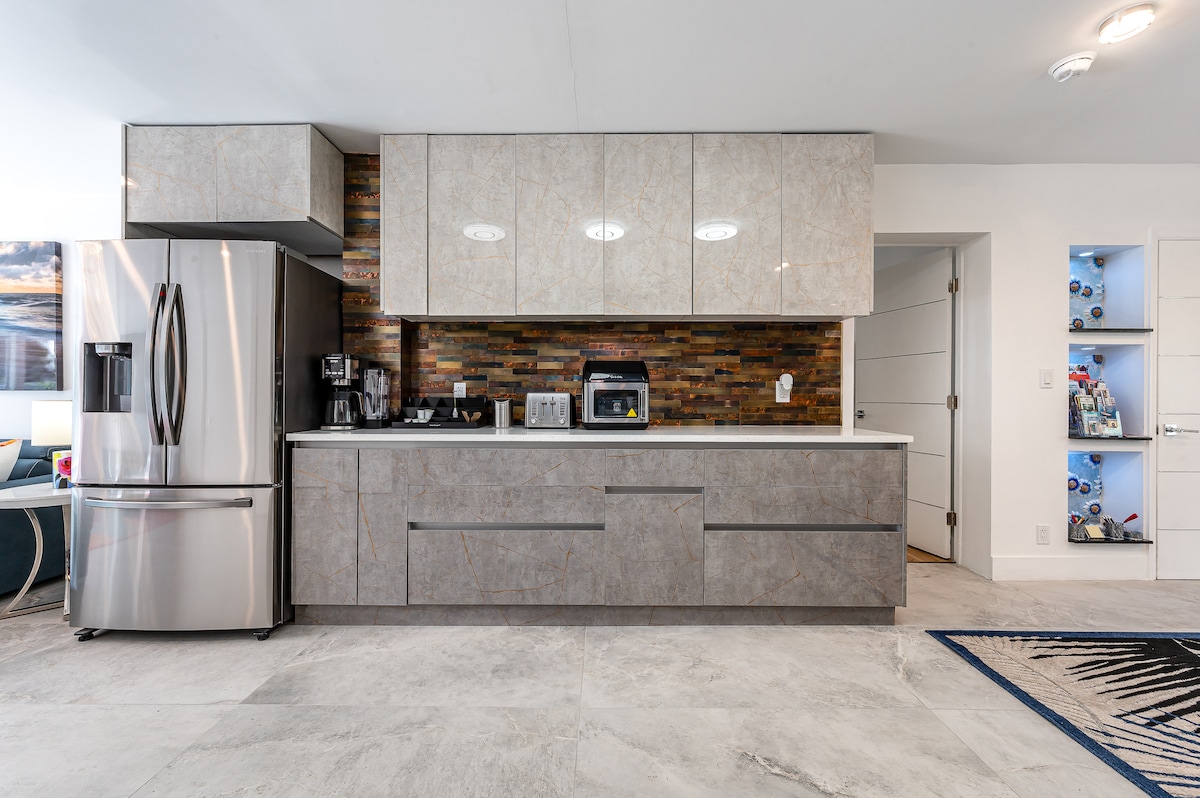 Kick back, relax, and recharge in your private pool house just 1 mile from the beach! (3 minutes!) and 5 minutes from the best shops and restaurants in Pompano FIsher Family Pier. Bluescape is designed for comfort, relaxation, and fun for the whole group!. You'll have everything you need from comfy mattress to bikes and beach gear for the perfect Florida getaway! Whether you’re here for a family vacation, a couples’ retreat, or a longer snowbird stay! We provide bikes for the whole family!