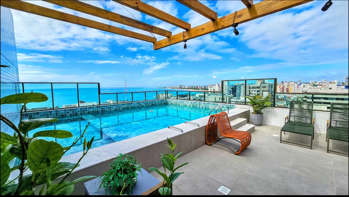SKY CONCEPT BUILDING. This unique place has a style all its own. 1-bedroom flat for up to 6 guests in the best location in Jatiúca. Building with modern system, complete leisure facilities to better serve our guests. Super-equipped and complete apartment with everything our visitors need for a perfect stay. Newly launched, have your breakfast looking at the sea, and enjoy a decorated and equipped flat. We have bed linens, towels, a hairdryer, iron and ironing board, and a washing machine.
