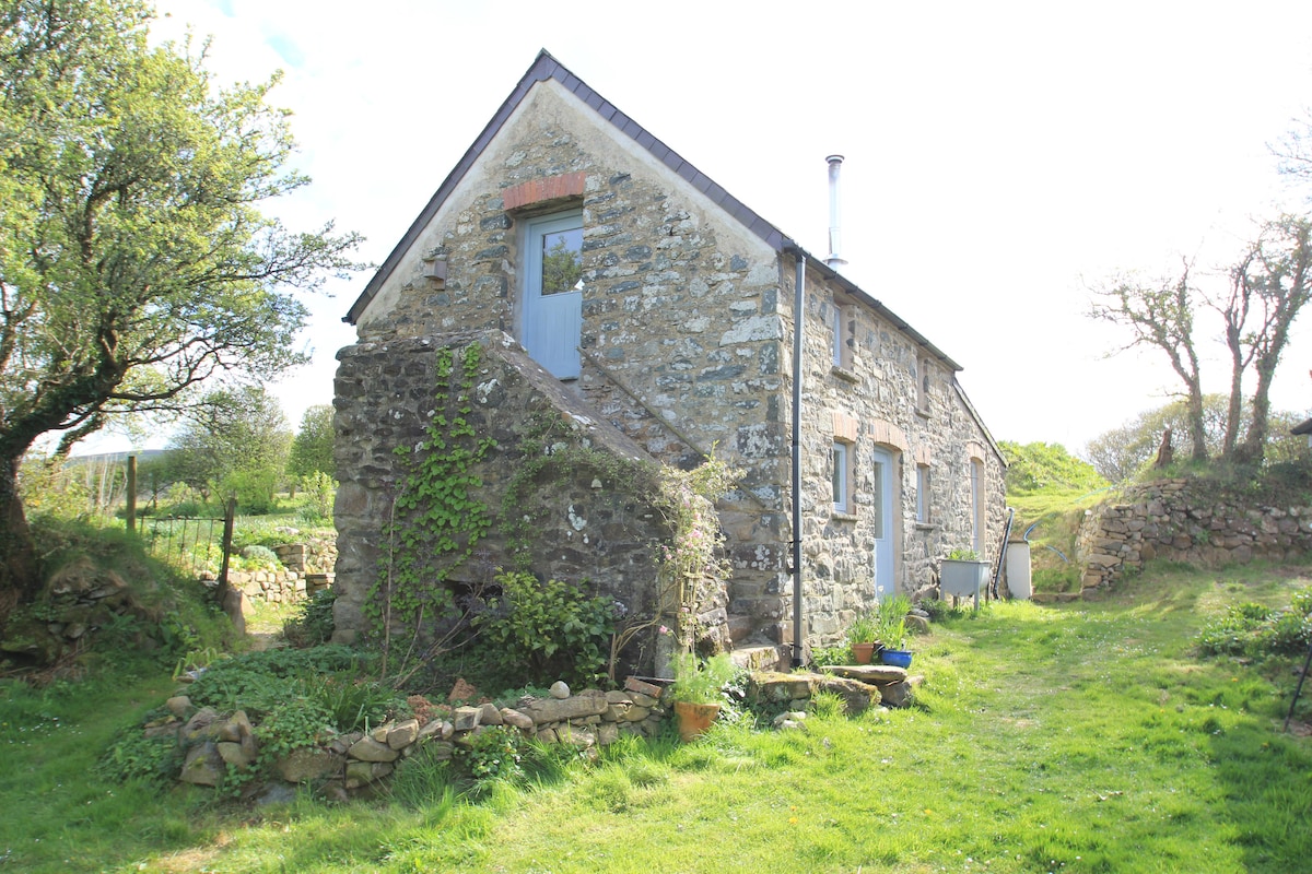 Romantic Pembrokeshire cottage in beautiful 3-acre grounds with sauna, natural swimming pond (rain dependent), games room & kayaks. Hill walks on the doorstep, stunning beaches & cliff walks nearby. Stargaze from a comfy king-size bed. Snuggle up by a wood-burning stove (free wood). Large bathroom with bath, shower & underfloor heating. Well equipped kitchen with coffee machine. Covered outdoor seating area with firepit & bbq. Fibre internet, smart TV (Netflix etc). 2 well-behaved dogs welcome.