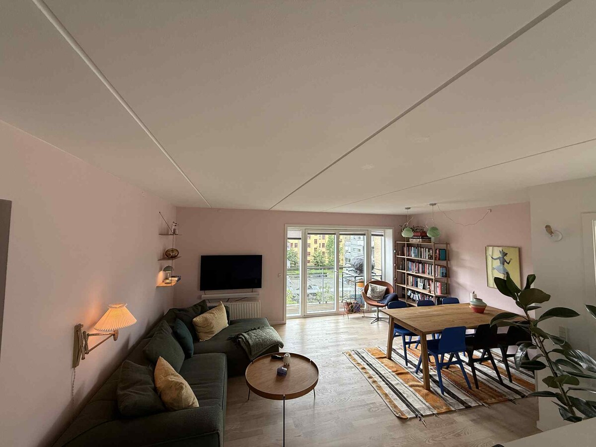New bright apartment 81 m2, with lift, balcony & garage with your own car charger. The apartment is suitable for 3 adults or 2 adults and 2 children. The property is step-free and wheelchair accessible. Very good location: - 10 min walk from Tivoli and Town Hall Square. - 5 min walk to Metro st. - 50 meters from outdoor harbour bath. - a lot of nice cafés and stores nearby (also bike rental).