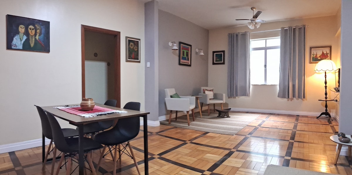 Excelente localização, apartamento espaçoso. Bairro central, a curtas caminhadas você chega a pontos turísticos; facilidade de transporte público e serviços. Cômodos amplos, ventilados e com boa iluminação natural. Quartos com ar condicionado. Cozinha completa e lavanderia. Estrutura para home office ( Internet de banda larga e desktop). Perfeito para famílias pelo espaço e segurança. Check-in ou check-out antecipado - taxa de R$150,00 a serem cobrados através do Airbnb