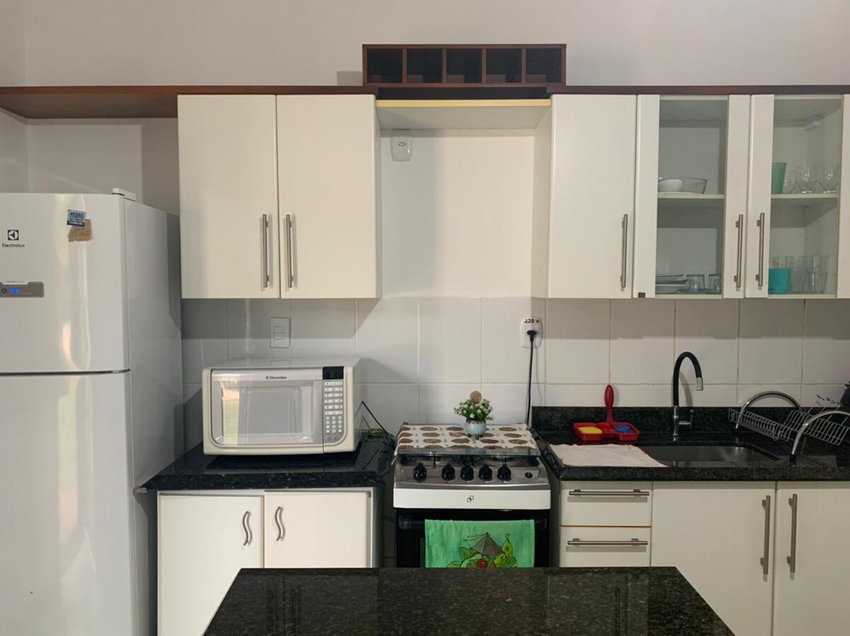 Super airy apartment, all rooms air-conditioned and with mosquito net protection on all windows. Fully furnished and with all the household utensils for a great stay. Kitchen with microwave, electric mixer and blender. Portable charcoal barbecue grill. Beach chairs and umbrellas. Linens and towels are not provided.