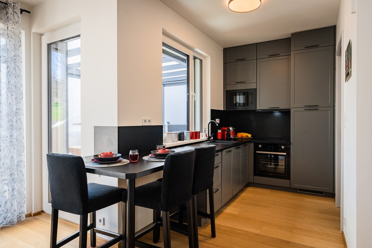 Modern new accommodation in a quiet area with an interesting view of Říp, Ještěd, Bezděz and the town of Mělník. Spacious 80m2 terrace with a private year-round Villeroy&Boch hot tub and sauna with a pleasant seating or relaxation in full privacy. The penthouse is located on the 13th floor and has an interior living area of 120m2.