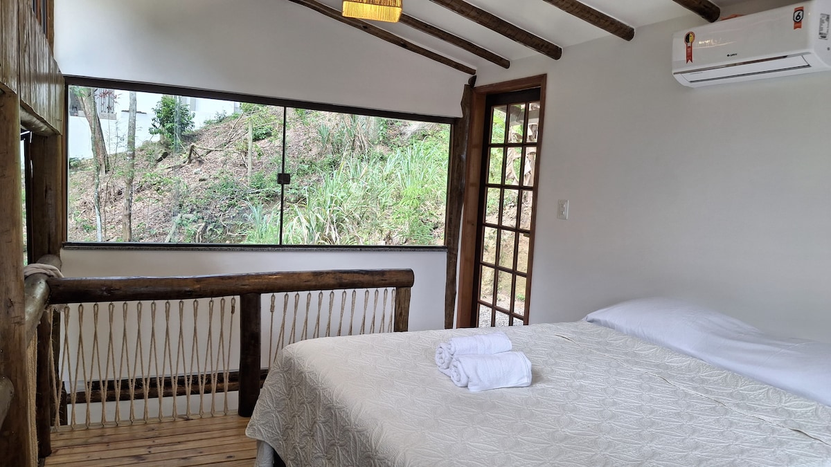 Refúgio único no Rio! Casinha de piaçava de 50 m² em meio à floresta tropical, totalmente integrada à natureza. A apenas 20 min da Praia do Leblon, conta com quarto aconchegante, cozinha, banheiro e deck com duas redes. Piscina compartilhada, trilhas, cachoeiras e mirantes deslumbrantes completam a experiência. Ideal para quem busca descanso, aventura e contato direto com o verde, sem abrir mão da proximidade com a cidade.