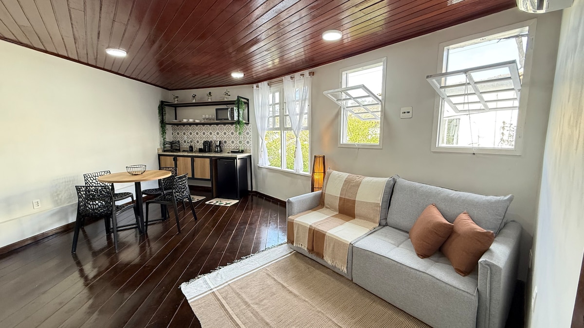 Want to spend a few days in Buzios? Near the Porto da Barra Gastronomic Center? We have what you need. Loft with suite, living room and kitchen with accommodations for up to 3 people with a double bed and a sofa bed. ATTENTION! Extra fee for the 3rd guest.