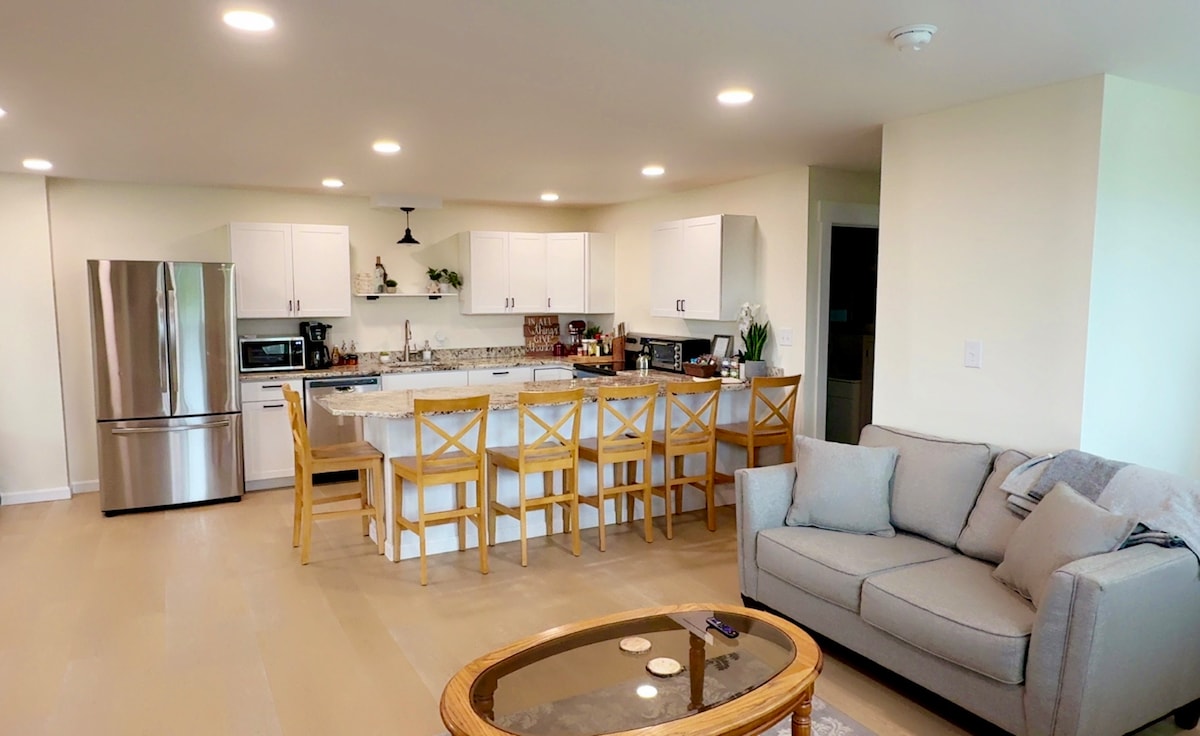 Whether visiting for business, pleasure, or medical/family reasons, this bright airy space is designed to make winter travel easier. Spacious garage, plowed and shoveled drives, ramp & walkways. Large entry room for all your winter gear. New bathroom, walk-in shower, breakfast counter with USB plugins, hardwired smoke and carbon monoxide monitors. Welcoming for guests with disabilities. WiFi, cable tv. Daybed for 4th guest. Cancel your booking without charge up to 24 hours before check-in.