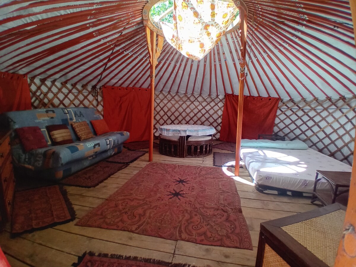 Our yurt is nestled in the scrubland surrounded by animals. Independent from the other accommodations, self-contained and heated, you will easily accommodate 4 (double bed + oriental convertible bench). A private terrace is at your disposal with its shaded trellis and a table and garden furniture. Located about a hundred meters from our small family farm, it is quiet. Breakfast (€10 per person, €5/under 10 years old). Evening meal (€15/adult, €10/child, €5/under 10).