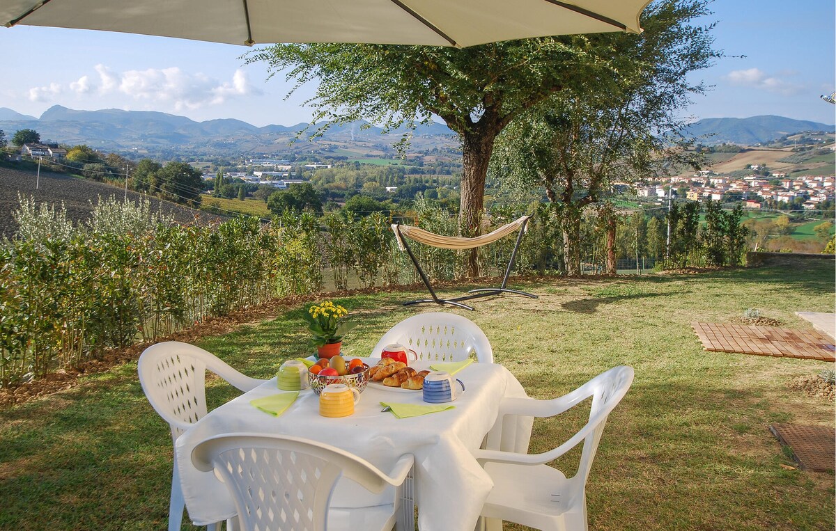 At the foot of Mount San Vicino, on a beautiful hill 420 meters above sea level, in complete tranquility and easily accessible, you can enjoy a beautiful 360-degree view, from the Sibillini Mountains to the Gola della Rossa. Easily reachable in 15 minutes Fabriano, in 20 minutes the beautiful caves of Frasassi, in 30 minutes Gubbio and in 60 minutes Senigallia or the Bay of Conero, in 20 minutes the ducal city of Camerino.