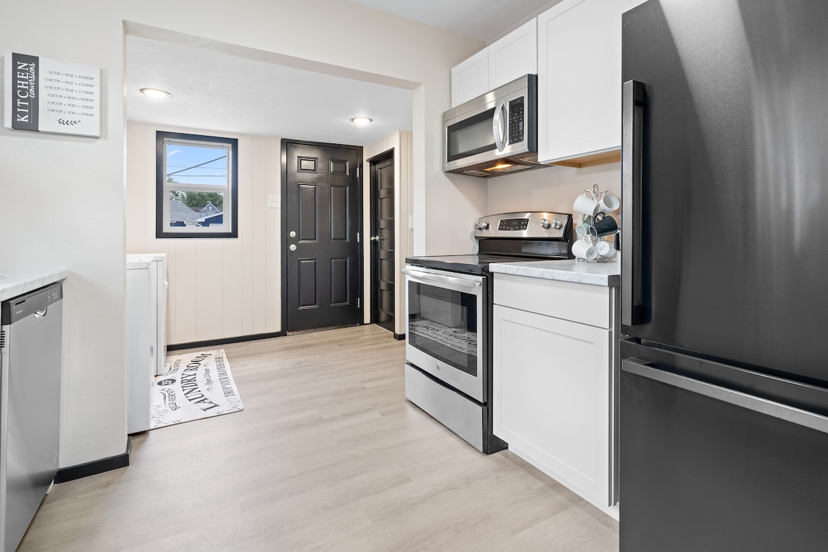 Beautifully Renovated Park House for Leisure or Extended Stays. Immaculate Non Smoking Home with Modern and Vintage Charm. Located in a quiet neighborhood that combines privacy and a range of fantastic amenities to enhance your stay with an unbeatable location. House has a Large King Master Bedroom with Flat Screen Smart HD TV, Bathroom with Shower, Spacious Living Room with Flat Screen Smart HD TV, Private Office, Dining Room, Modern Kitchen, Laundry Room, 1 Car Garage for a Sm-Md size vehicle