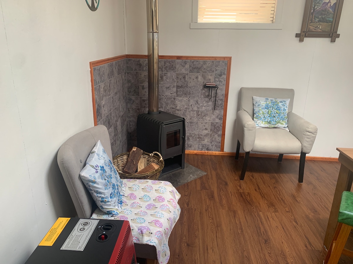 The loft sits on top of a small barn. It has large picture windows with a clear view of Lago Llanquihue and Volcan Osorno. There is a small balcony with outdoor seating. The interior decoration is entirely local hardwood, stone, and wool. The kitchen is fully equipped. There is a pellet stove that keeps it warm even on sub freezing days. The loft is a 20 minute walk from Puerto Varas center.