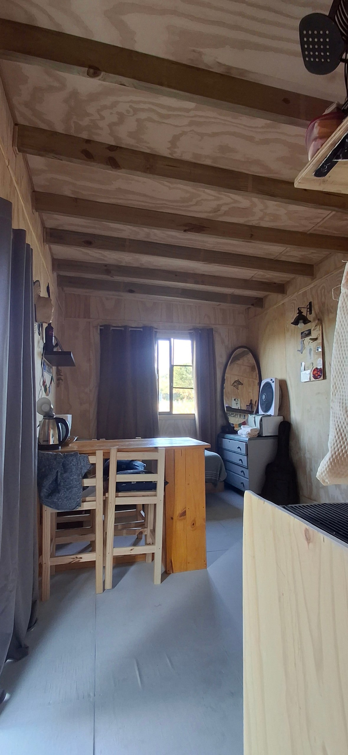 Enjoy this unique and tranquil getaway. Claudia and I beautiful wood tiny home is located on top of a hill in the up and coming " El Chorro " neighborhood , 800 meters from one of the most beautiful beaches in Punta del Este . the bedroom is 3mts×3mts making it the right size with an outdoor deck to relax on the hammock and 360° view . The kitchen has everything you need and the third bed located downstairs is super comfortable with high quality mattress and turns into a sofa during the day.