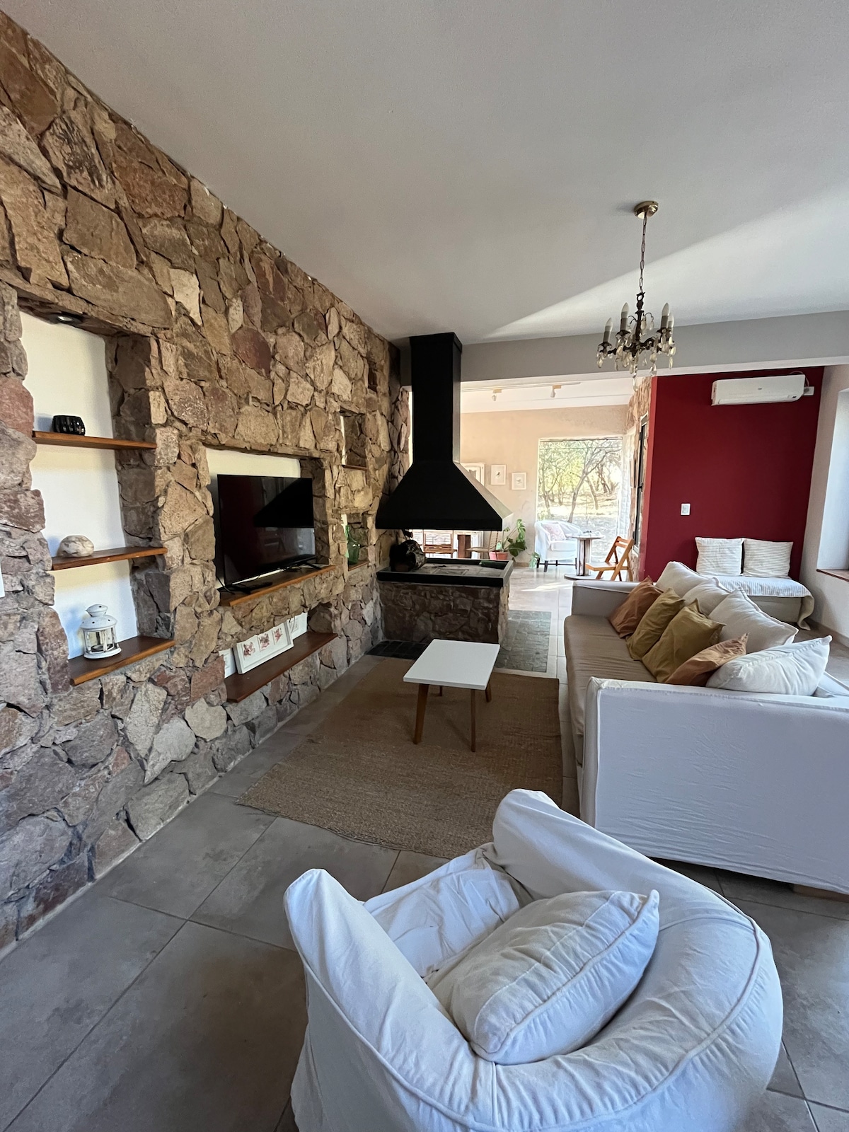 Experience the exclusive "Casa Sierra Pura" experience, surrounded by olive trees and nature, in the Sierra de Los Comechingones. Wake up to stunning sunrise views or enjoy unforgettable sunsets from the pool or gallery overlooking the mountains. Suite with exclusive terrace. Private garage. Barbecue to show off and trekking trails. Satellite WIFI, TV with streaming and DirectTV. A/C in all rooms and also a full kitchen if you enjoy cooking.