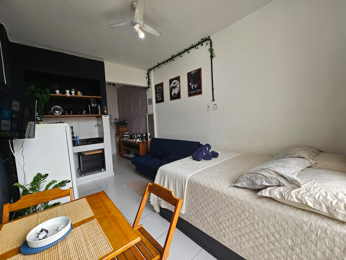 Beautiful and cozy, the apartment is located in front of Copacabana beach, at tower 6. The entrance is through a gallery accessed via Av. Atlântica and Av. Nossa Senhora de Copacabana. The apartment has an open concept living room and bedroom, kitchen and bathroom and is equipped with Wi-Fi, TV, 2 fans, air-conditioning, and more. Great location! Nearby are markets, pharmacy, restaurants, buses, subway, Itaú bike and more. You can visit Fort Copacabana, Arpoador and Ipanema on foot.
