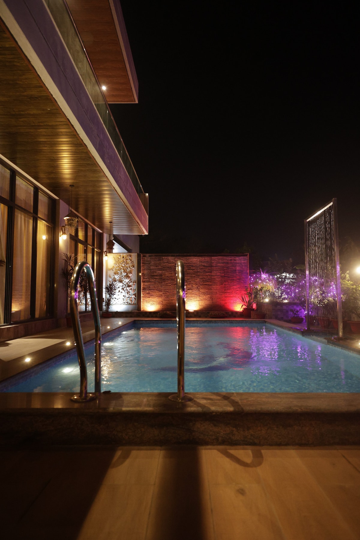 This beautiful one-bedroom Wooden House , made of Imported Canadian pine, located near the airport on VIP Road in Raipur, the capital of Chhattisgarh, offers the experience of being in Canada or Switzerland. It boasts a magnificent swimming pool and party lawn. This beautiful Wooden House near the city makes you feel far from the city.