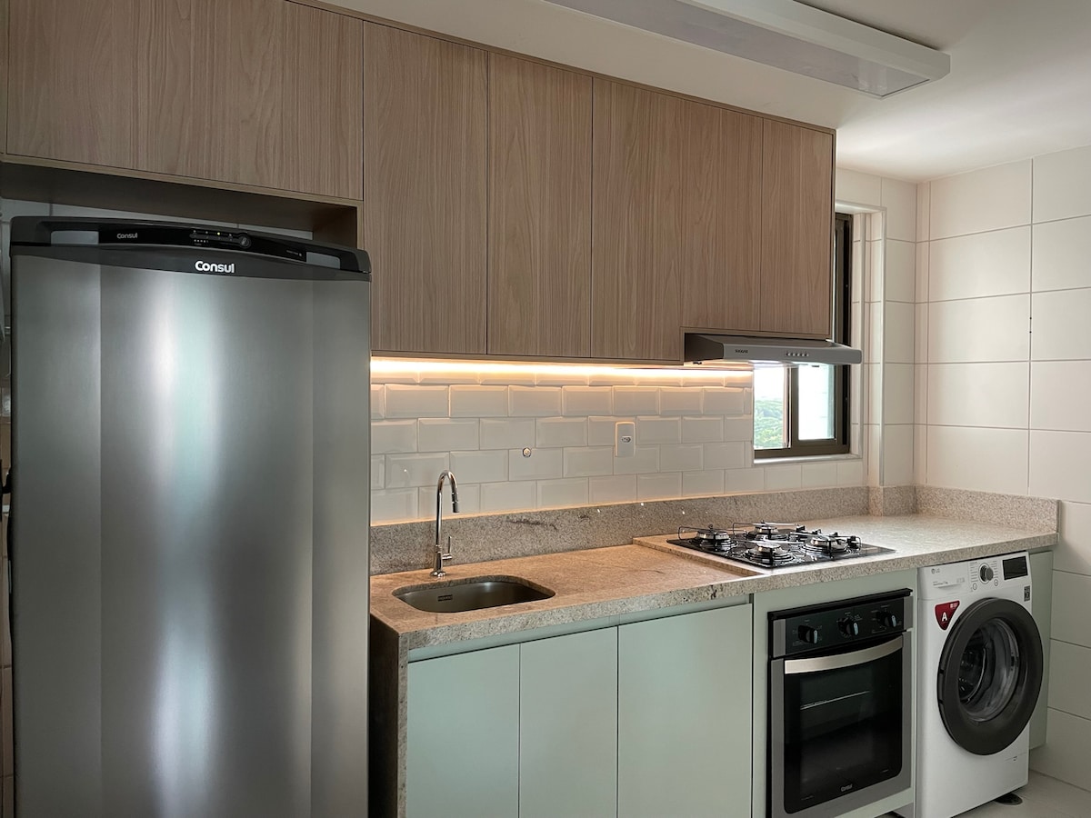 This unique place has a style all its own. Perfect for those who are going to work or enjoy a few days in Recife. Great location, close to the beach, the main Shopping malls, restaurants, bakeries, cafes, etc. Our apartment has a comfortable queen-size bed and an auxiliary bed. Premium bed linens. 50" TV. Internet. Well-equipped kitchen. A comfortable table for meals or work. Building with parking, laundry, coworking, gourmet space, swimming pool, whirlpool, fitness center.