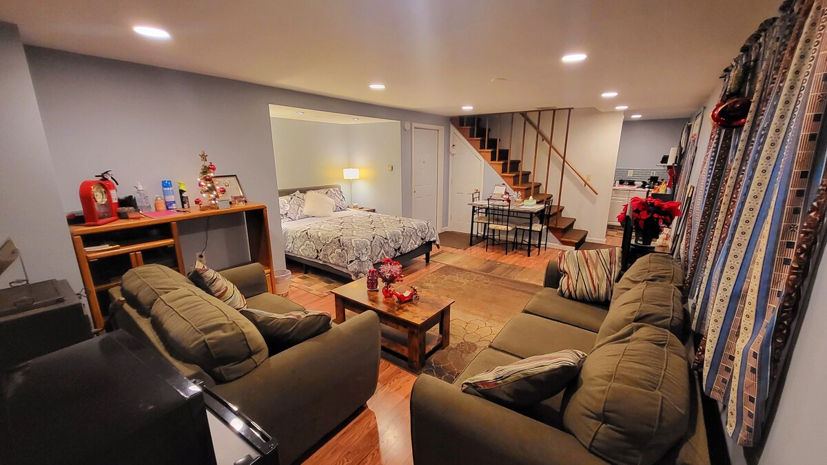 Located in a very safe neighborhood just off Route 7, this house sits on a 2-acre property with a backyard. We are offering for rent the large private studio on the first floor of this 2-story home. The studio provides everything you need, including a fully equipped kitchenette for small meal preps, a full bathroom, a seating area, a small dining table, and designated parking spaces. Be aware of potential footsteps and noises from the second floor. a small Firepit is available upon request.