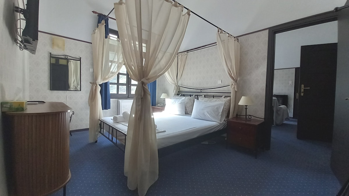 Elafos Hotel offers a unique stay in the heart of nature, combining comfort, privacy, and stunning views. Guests can choose between suites and rooms with either mountain or sea view, each accommodating up to two people. Some rooms can host a third guest upon request with an extra bed. All units feature a private bathroom within the bedroom, and most provide access to private or public parking.
