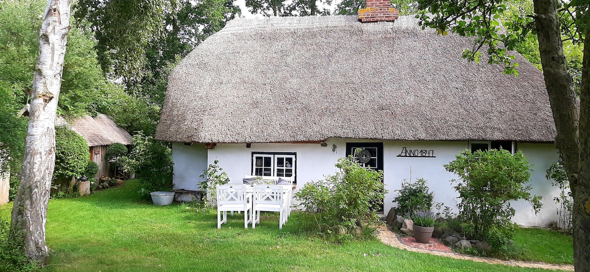 Idyllic thatched cottage on the Baltic Sea