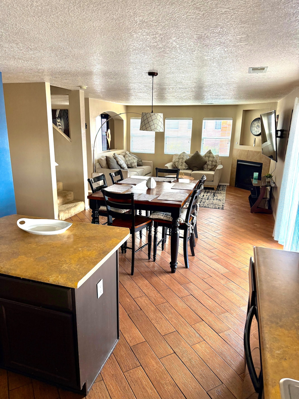 Come stay, work, or play. This two bedroom home with dedicated office space is modern and comfortable. Conveniently located in Rio Rancho. Minutes from Intel, less than 5 miles to Presbyterian Rust Hospital, approximately 20 minutes to Balloon Fiesta Park. Wood burning fireplace available; wood provided. King beds in both bedrooms. Fully equipped kitchen with professional gas stove. Gas fire pit, lounge chairs and porch swing available in the inviting backyard.