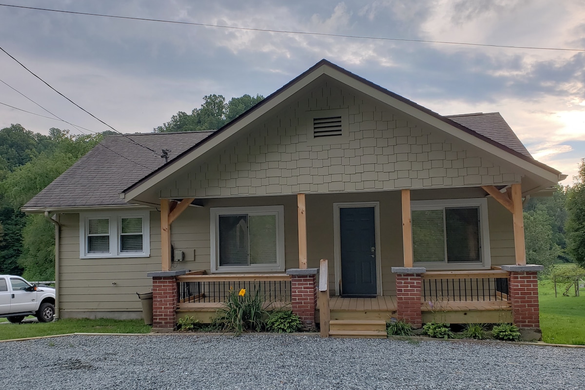 This is a 100 year old farmhouse fully refurbished with all modern amenities. Three bedrooms and 1 bath, it is charming, cozy and tastefully decorated. The decor will take you back to a simple and easy time where raising big families and living off the land was the norm. Situated on the beautiful Doe river, you can step into the front yard and enjoy fly fishing or simply sit on the porch and enjoy the sound of the water. Located just a mile from Roan Mt State Park and 12 miles from the majestic mile high Roan Mt, home of the enchanting Rhodendron Gardens. This area is near Watauga Lake, Bristol Motor Speedway, several ski resorts, lots of hiking trails including the world famous Appalachian Trail. You will be in the midst of some of the prettiest fall leaves. The Blue Ridge Parkway is also nearby. There are so many things to do here, you will never be bored. We have several local restaurants that will keep you well fed.
