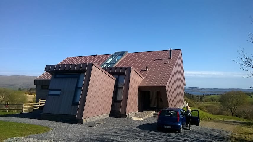 Set in gorgeous countryside overlooking Lough Corrib and the Connemara mountains, our modern eco house has all the contemporary features you could want! Just 15 mins from Oughterard, if you want to get away from it all, this is the perfect retreat. Whether you want to escape and relax by the cosy wood burning stove, take country walks, go trout fishing on Lough Corrib or explore Connemara, the house is perfectly placed. Well equipped for families with a cot, high chair, toys and table tennis.